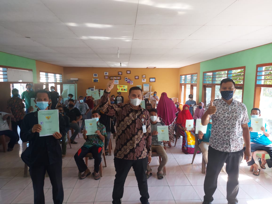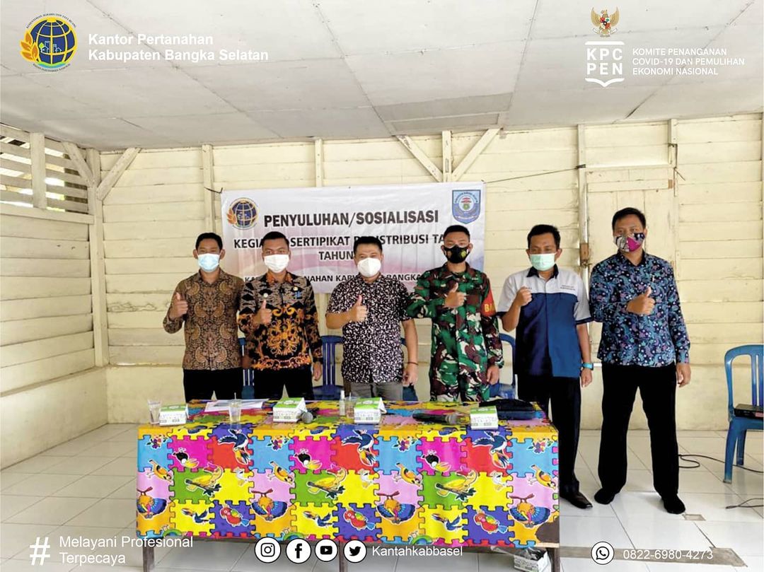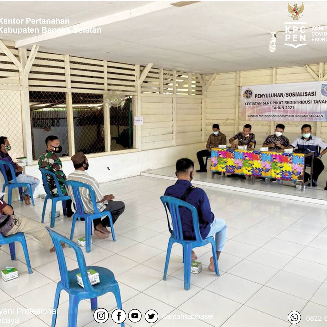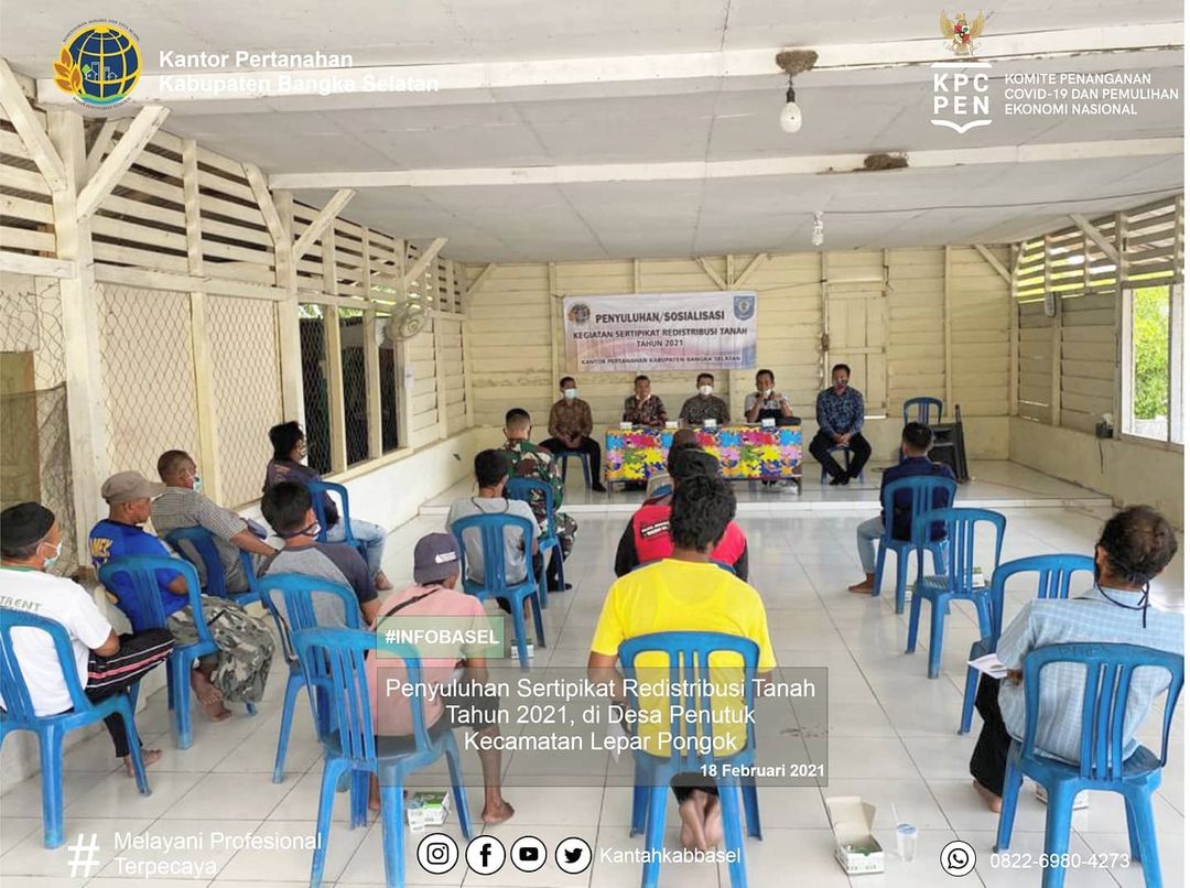 Penyuluhan Sertipikat Redistribusi Tanah di Desa Penutuk Pulau Lepar Pongok yang di hadiri oleh Bapak Agung Basuki, S.ST.,M.H Selaku Kepala Kantor Pertanahan Kota Palembang serta di dampingi Kepala Desa Penutuk serta APH setempat. - Target Sertipikat Tanah di Kabuapten Bangka Seatan pada Tahun 2021 sebanyak 3.000 Sertipikat. untuk Target Sertipikat Redistribusi Tanah di Desa Penutuk sebanyak 200 Sertipikat.