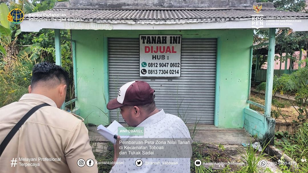 Zona Nilai Tanah adalah poligon yang menggambarkan nilai tanah yang relative sama dari sekumpulan bidang tanah didalamnya, yang batasannya bisa bersifat imajiner ataupun nyata sesuai dengan penggunaan tanah. Kegiatan Pembaharuan Zona Nilai Tanah bertujuan agar informasi nilai tanah selalu terupdate (terbaru) yang dapat dimanfaatkan untk pelayanan pertanahan dan sebagai referensi kebijakan yang berkaitan dengan nilai tanah. - Di Kota Palembang desa/kel yang sudah di data untuk kegiatan Pembaruan Peta Zona Nilai Tanah adalah sebagai berikut : kelurahan toboali, kelurahan tanjung ketapang, kelurahan teladan, desa gadung, desa rias, desa serdang, desa pasir putih, desa keposang, dan desa Tukak sadai