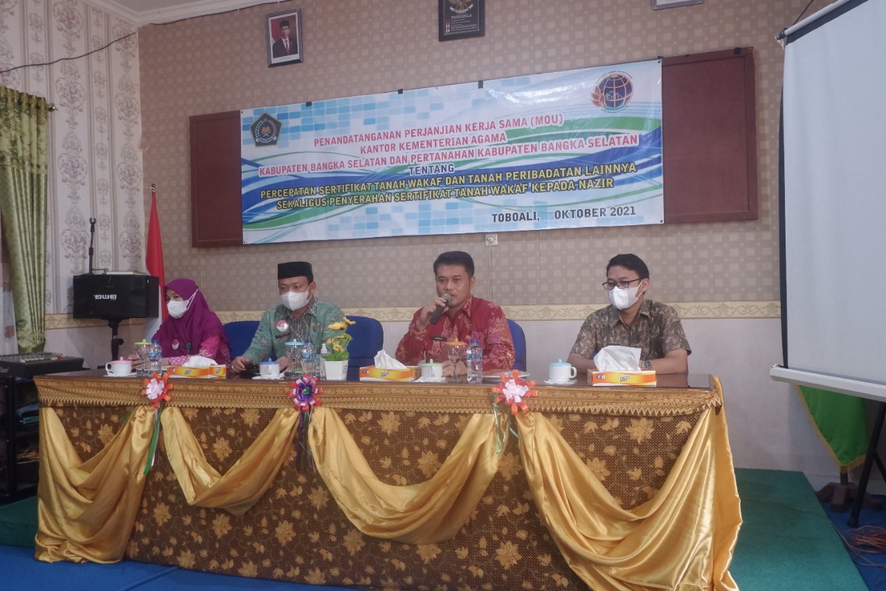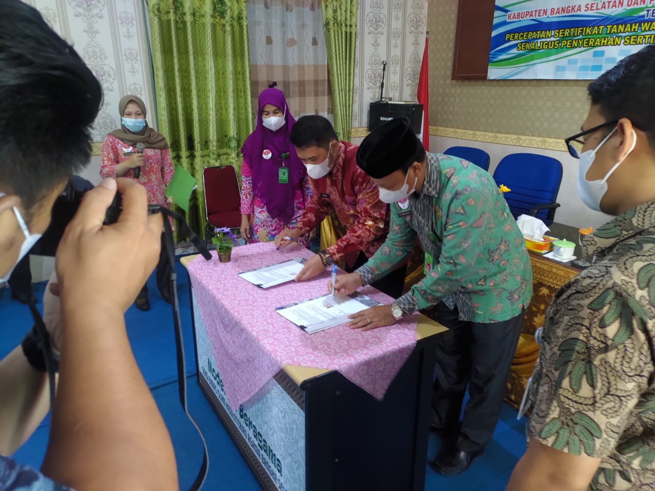 Sebagai implementasi penandatanganan perjanjian kerjasama ini, pada hari jumat tanggal 15 Oktober 2021 dilaksanakan Sosialisasi Sertipikasi Tanah Wakaf dan Tanah Peribadatan Lainnya yang dihadiri para pemuka agama, Pengurus Badan Wakaf Indonesia (BWI), Nadzir di lingkungan Kecamatan Tukak Sadai dengan Narasumber Kepala Seksi Penetapan Hak dan Pendaftaran Tanah, MGS. Dedi, A,Md, Kepala Seksi Survei dan Pemetaan, Ema Martonowadi, S.AP., M.M., dan Pejabat Fungsional Koordinator Penetapan Hak, Tan Reza Biando, S.H. dengan difasilitasi oleh Kepala Seksi Penyelenggaraan Zakat dan Wakaf, Yuslalili Ningsih, S.Ag.