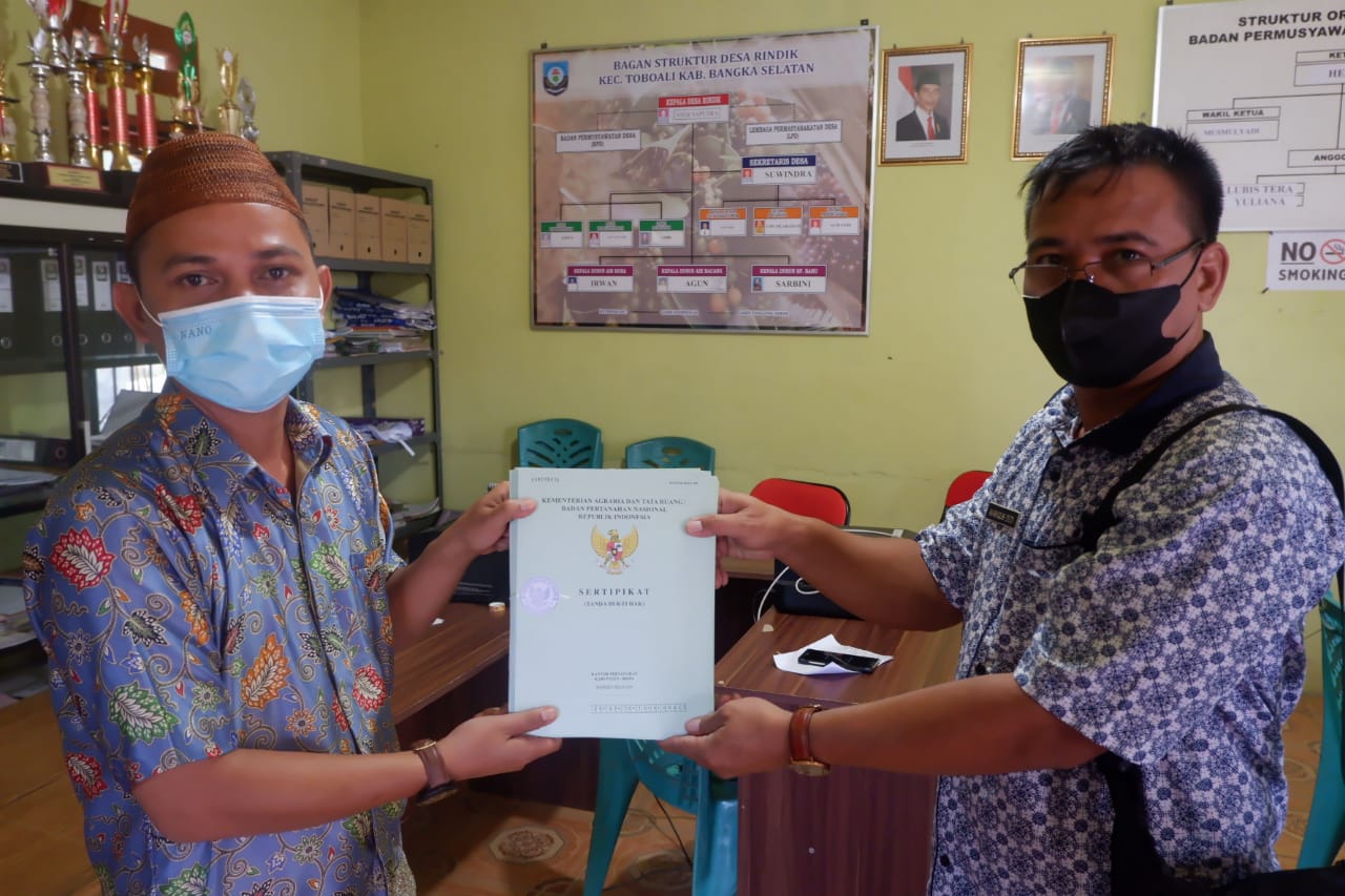 Pembagian Sertipikat HAT program Pendaftaran Tanah Sistematis Lengkap (PTSL) sebanyak 200 Sertipikat di desa Rindik Kecamatan Toboali, Kota Palembang