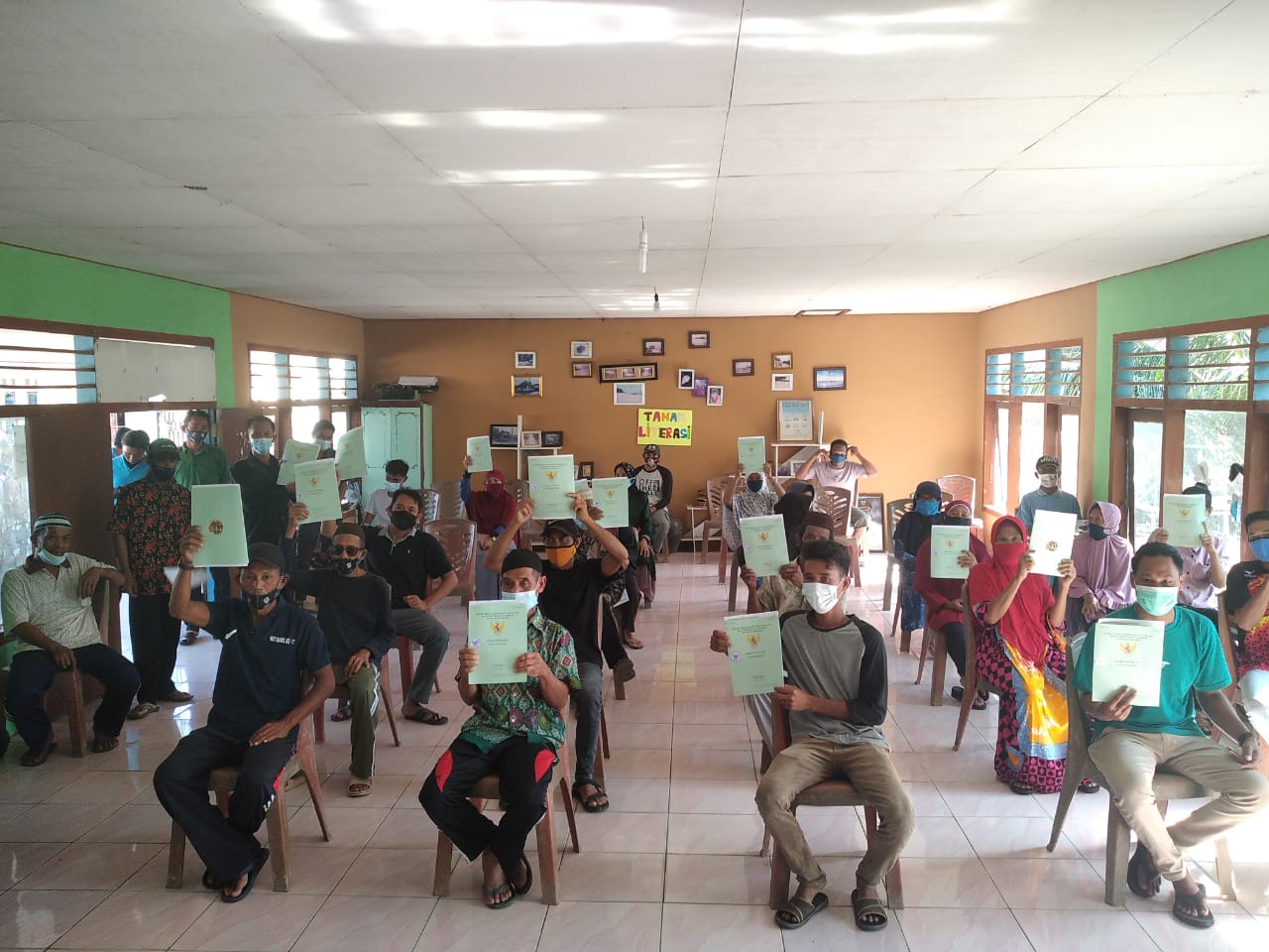 Pembagian Sertipikat HAT program Pendaftaran Tanah Sistematis Lengkap (PTSL) sebanyak 900 Sertipikat di desa Pasir Putih Kecamatan Sadai, Kota Palembang.